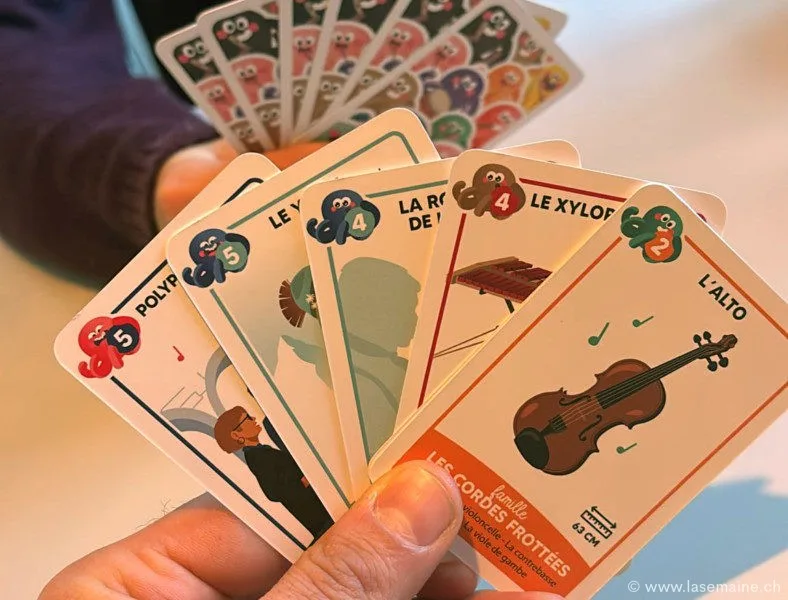 Ce jeu de 7 familles est interactif et intergénérationnel. Grâce à une collaboration avec des musiciens régionaux, les cartes sont illustrées de manière sonore. Les enfants peuvent ainsi reconnaître, comparer et explorer les univers sonores de manière naturelle avant même de débuter un enseignement structuré.